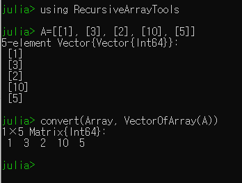 Julia - VectorOfArray 사용하기 (배열의 배열을 1차원 배열로 변환) 본문