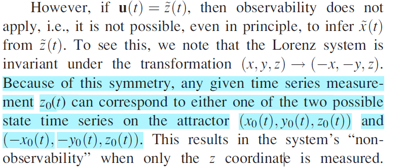 실제로 Lorenz system에서 \( x \)를 \( u(t) \)로 두고 \( y,\,z\)를 추론하는 경우에는 모델이 잘 working하지만,